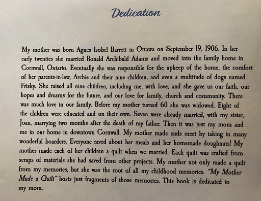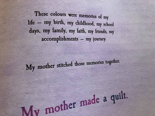 My Mother Made a Quilt is a tale told in pictures and words. May it inspire quilters, chroniclers of family legacies, and parents looking for a creative way to encapsulate the growth of a beloved child.